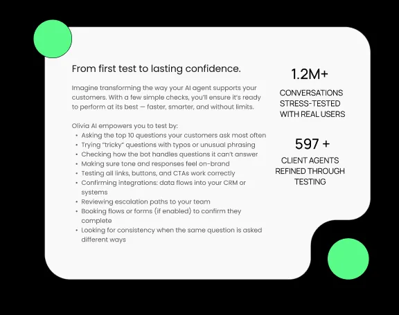Large Call toGOOD NEWS: ASP - Your Olivia AI Agent is Ready to Test Action Headline